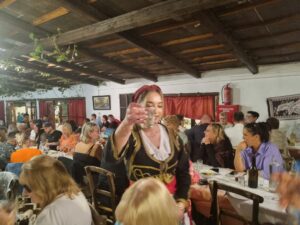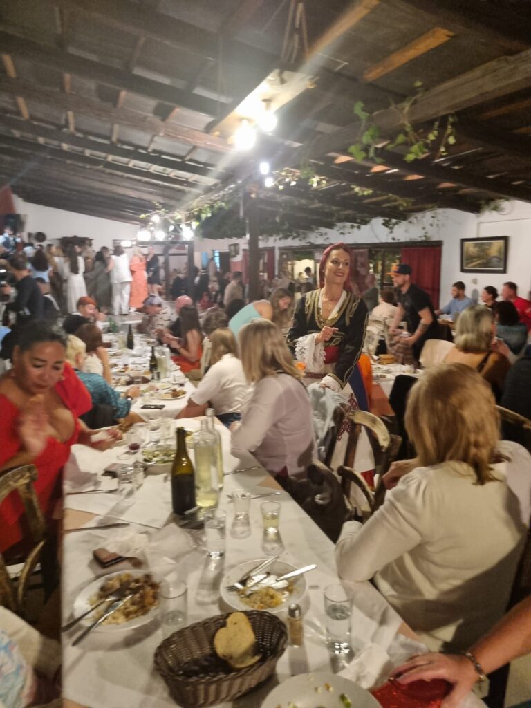 So, we headed off, last Saturday night, to a little mountain village for a spectacular entertainment extravaganza. It was a unique Cretan night show providing an unforgettable experience blending traditional Greek hospitality with musical entertainment to create an evening filled with melody, dance, and the rich flavours of Crete.