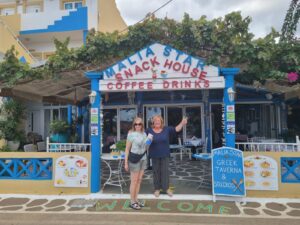 Stalis village became our favourite nighttime destination especially the raucous Robin Hood Bar. Congratulations to the Four Maid Marions namely Cathy, Trish, Susan and Sue on winning the quiz night competition against Jaye, Alan, Ruth, and Stephen also known as the Jars!